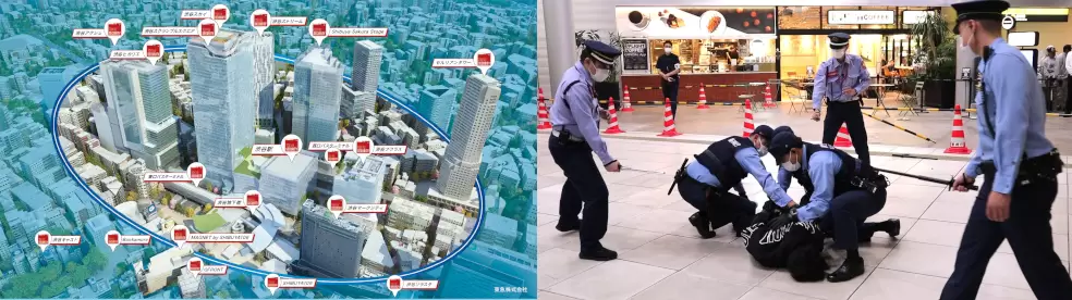 渋谷エリアセキュリティと合同防犯訓練の様子