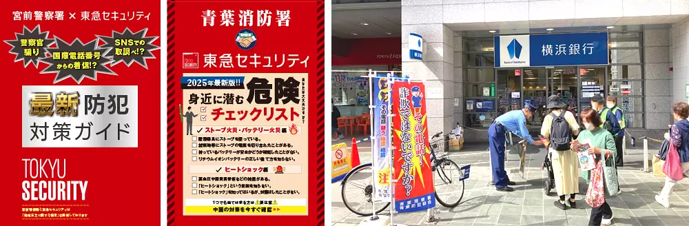 現在、東急セキュリティでは、警察と連携した特殊詐欺抑制に向けた啓発活動や、消防との協力による「予防救急」に関する情報発信などを積極的におこなっていますが、今後もより一層、行政機関との連携を強化し、地域の安全・安心の向上に努めて参ります。