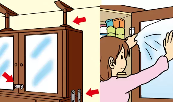 | 扉開放防止器具 | 食器棚や収納の扉に設置 | 揺れで扉が開き、中身が飛び出すのを防ぎます。 |