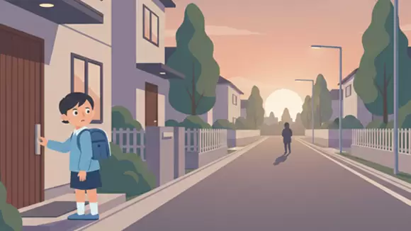 学校や習い事などから帰宅し、そのまま子どもに留守番を任せる場合には、帰宅直後に潜む犯罪リスクに注意が必要です。帰宅途中の子どもの後をつけたり、玄関周辺に潜めて待ち伏せしたりして、子どもが玄関ドアを開けた瞬間に背後から押し入り、犯行に及ぶケースが報告されています。
